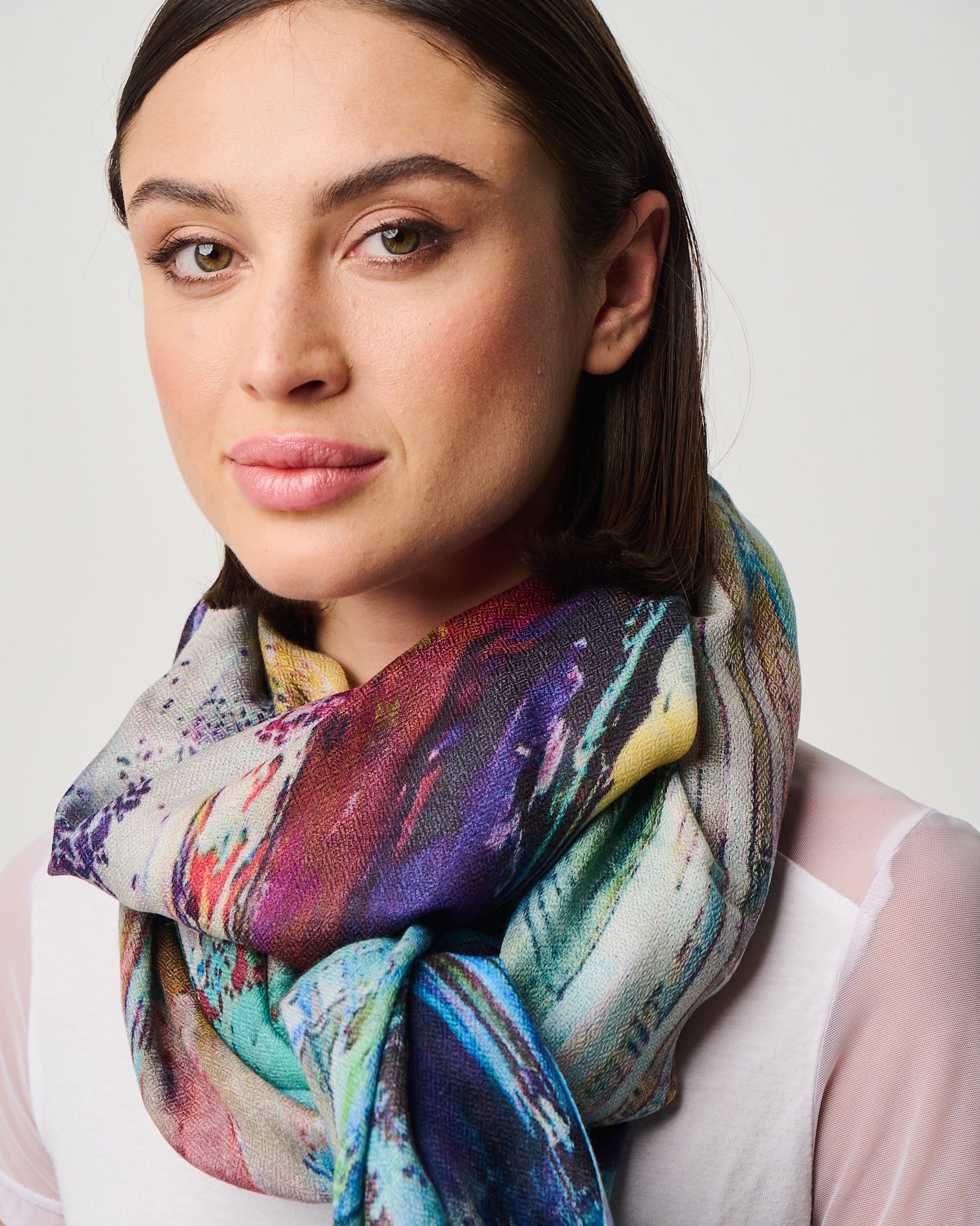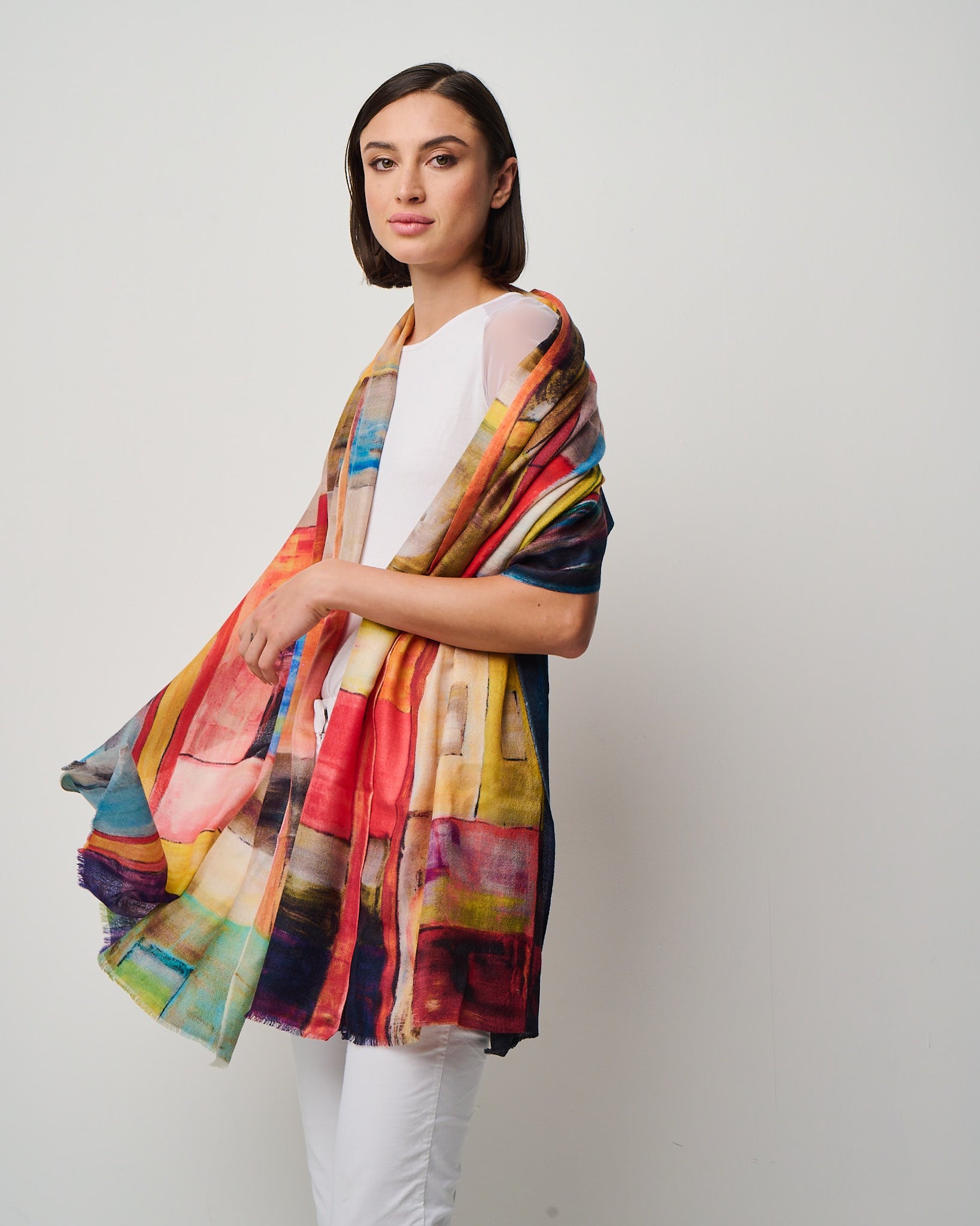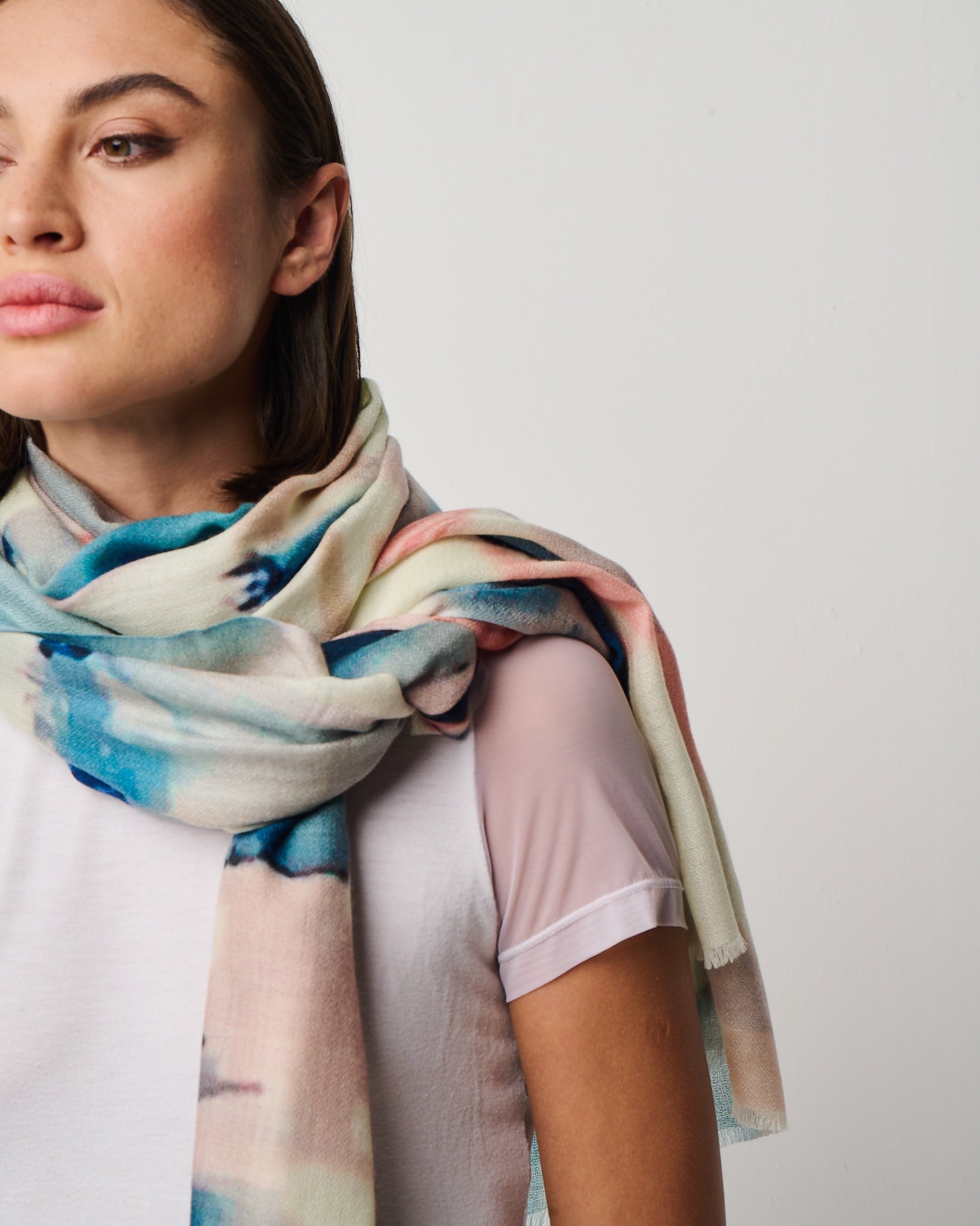 Crafted from the exquisite cashmere fibers of the Kashmir region, this INDIVIDUALLY hand-painted wrap is a walking piece of art.
