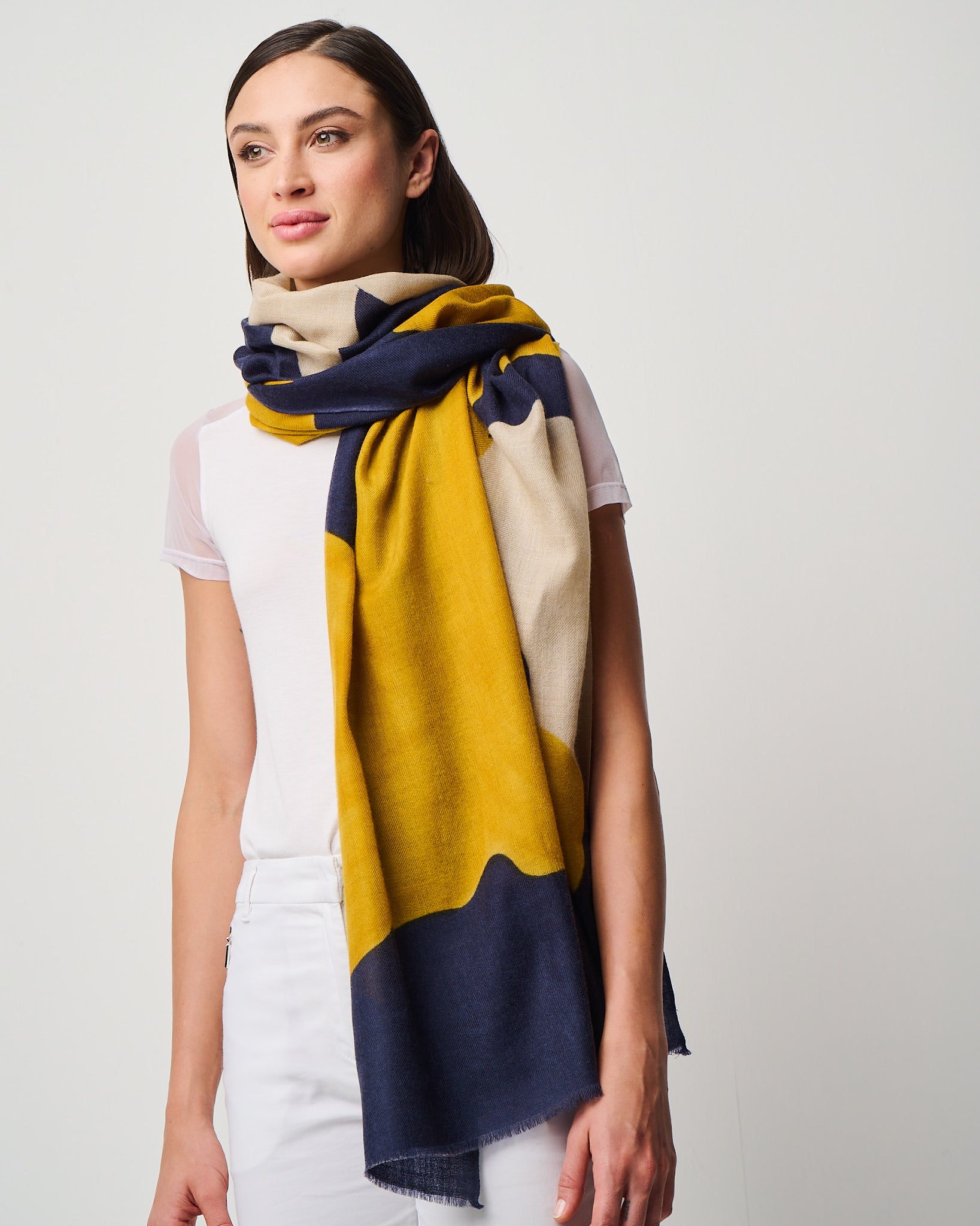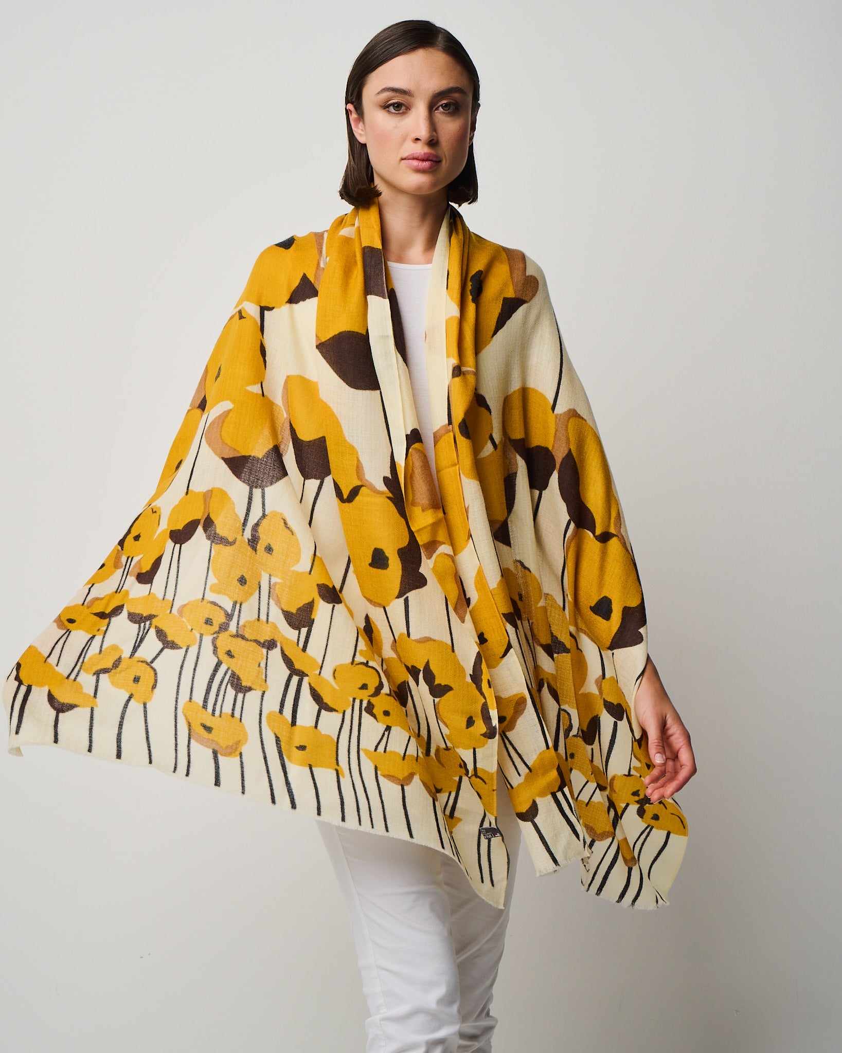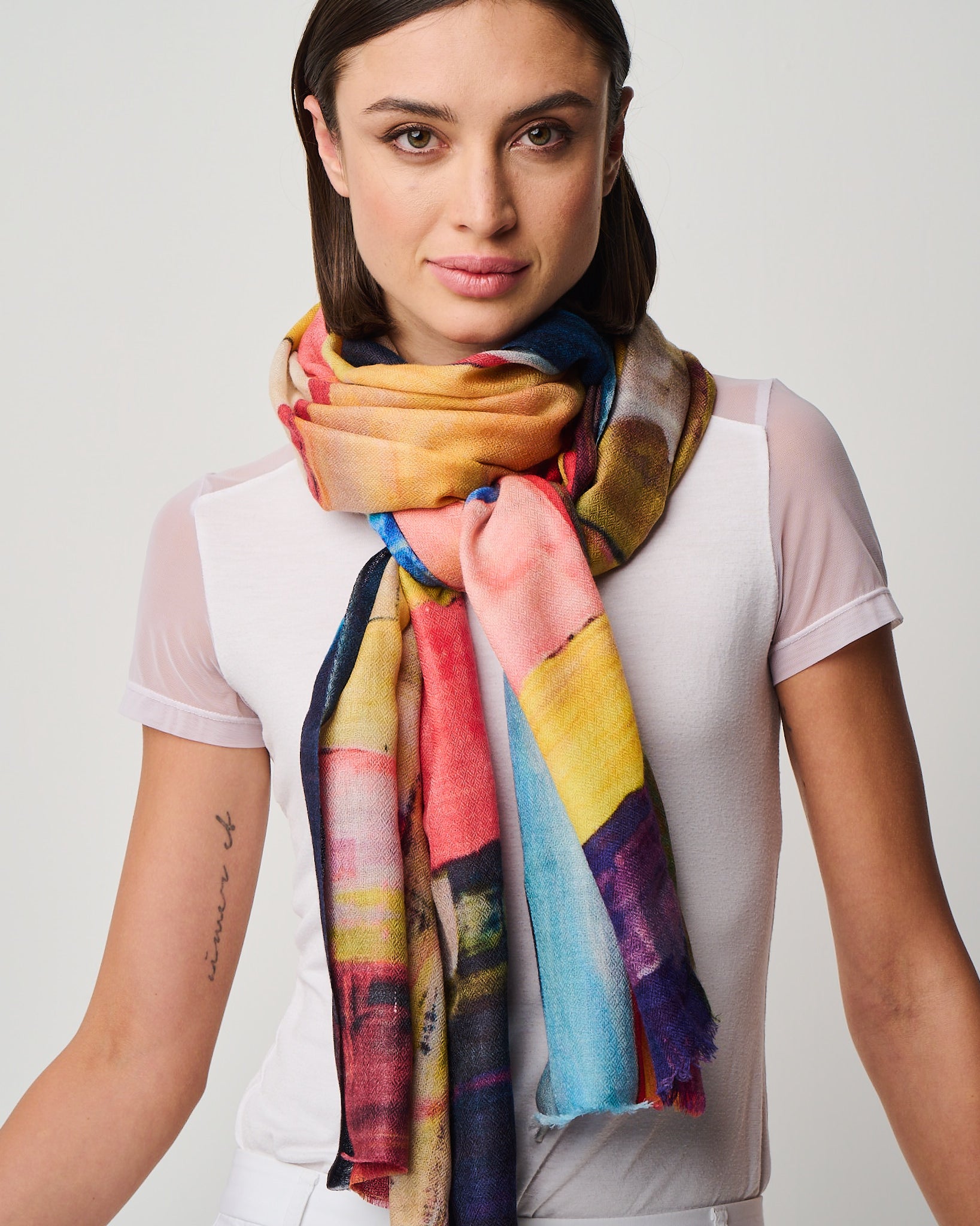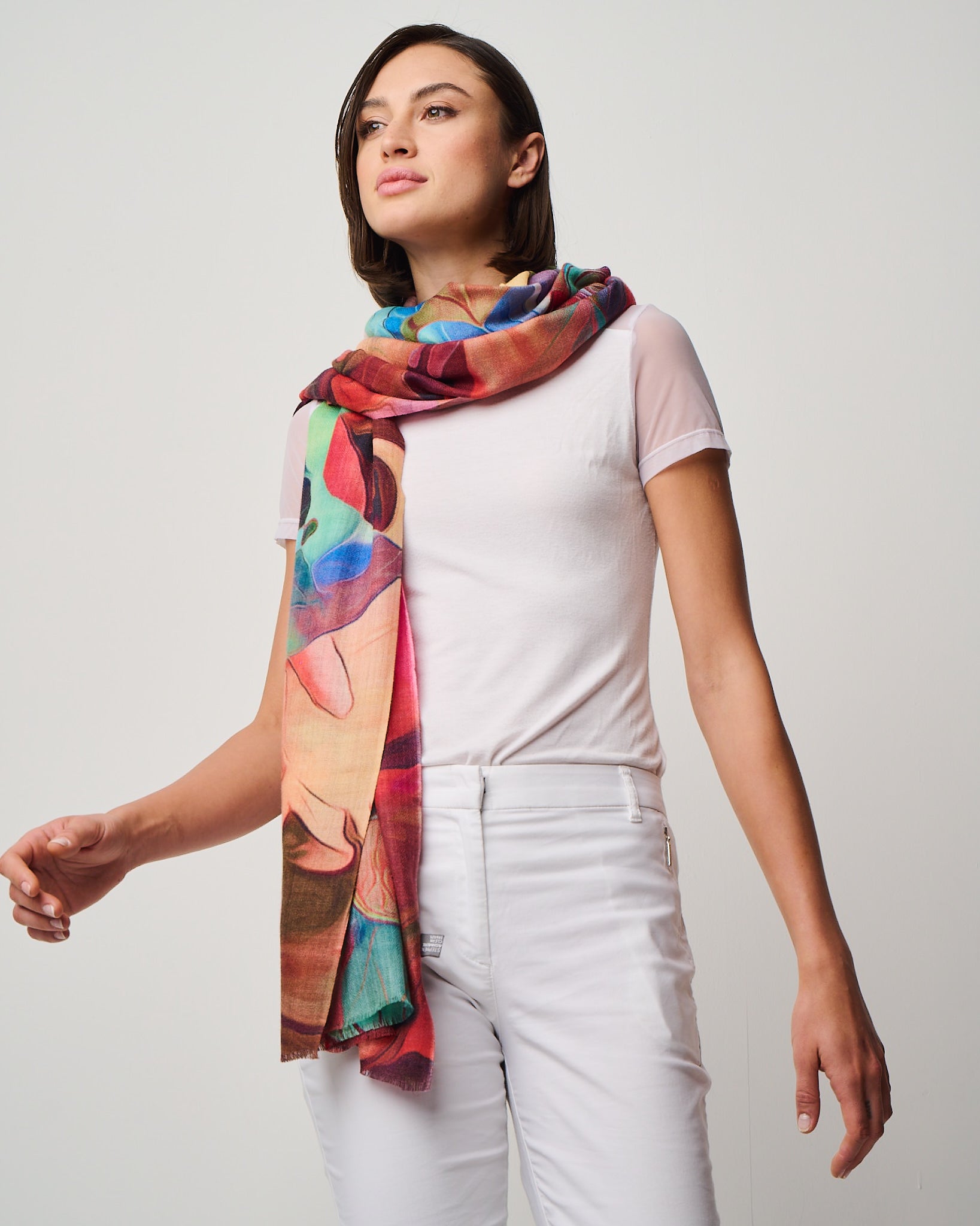 Crafted from the exquisite cashmere fibers of the Kashmir region, this INDIVIDUALLY hand-painted wrap is a walking piece of art.
