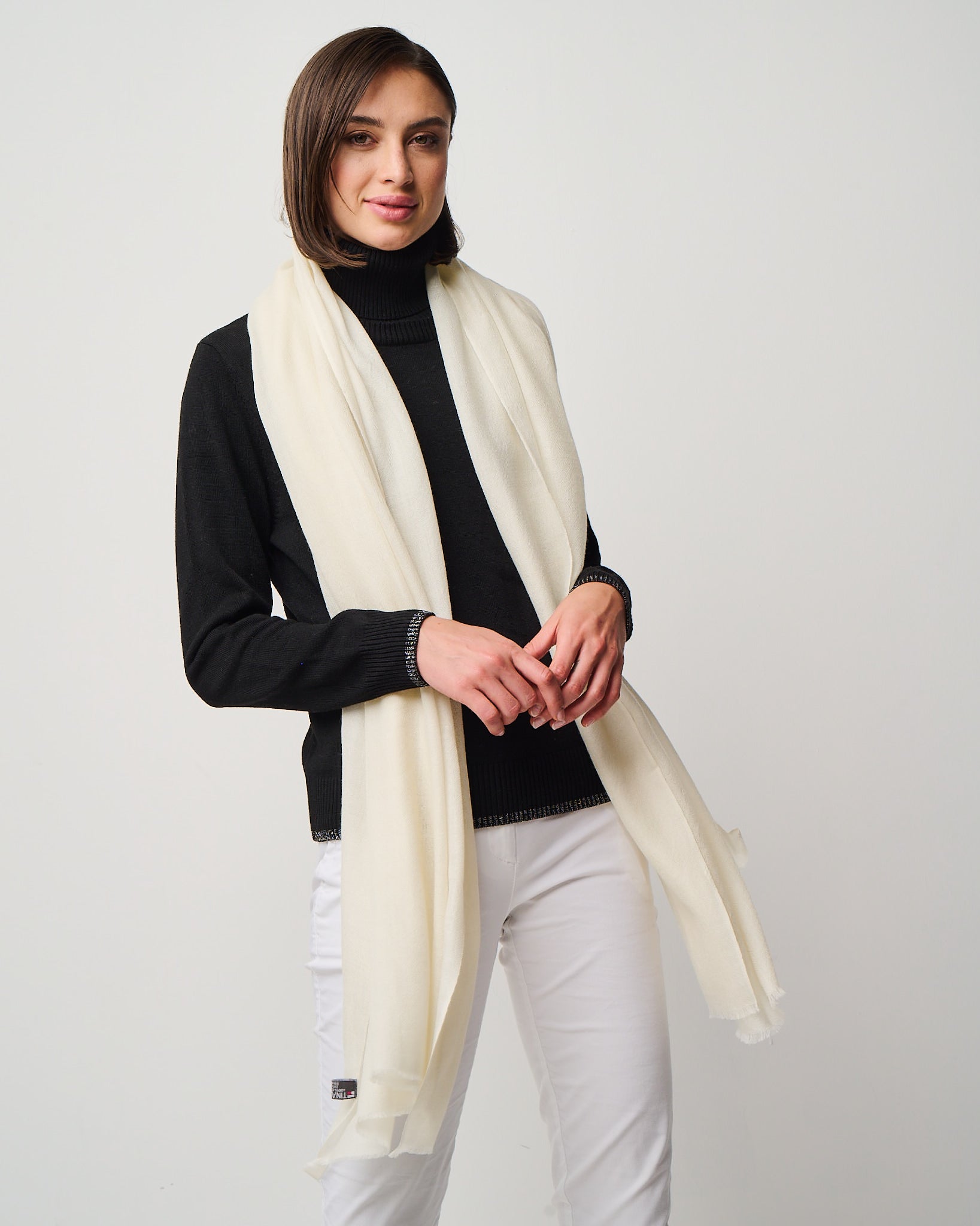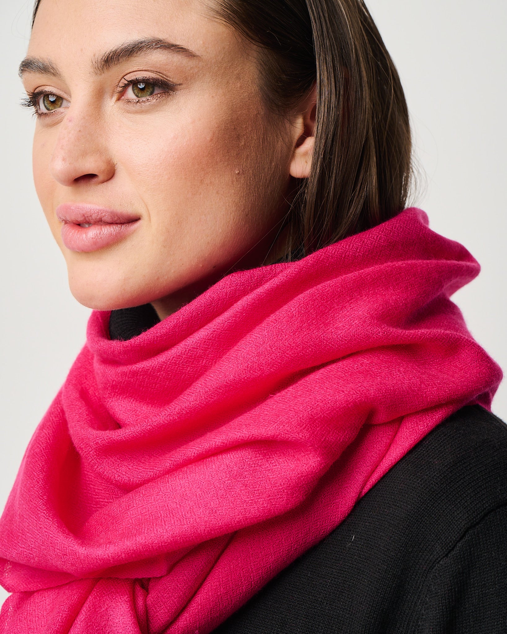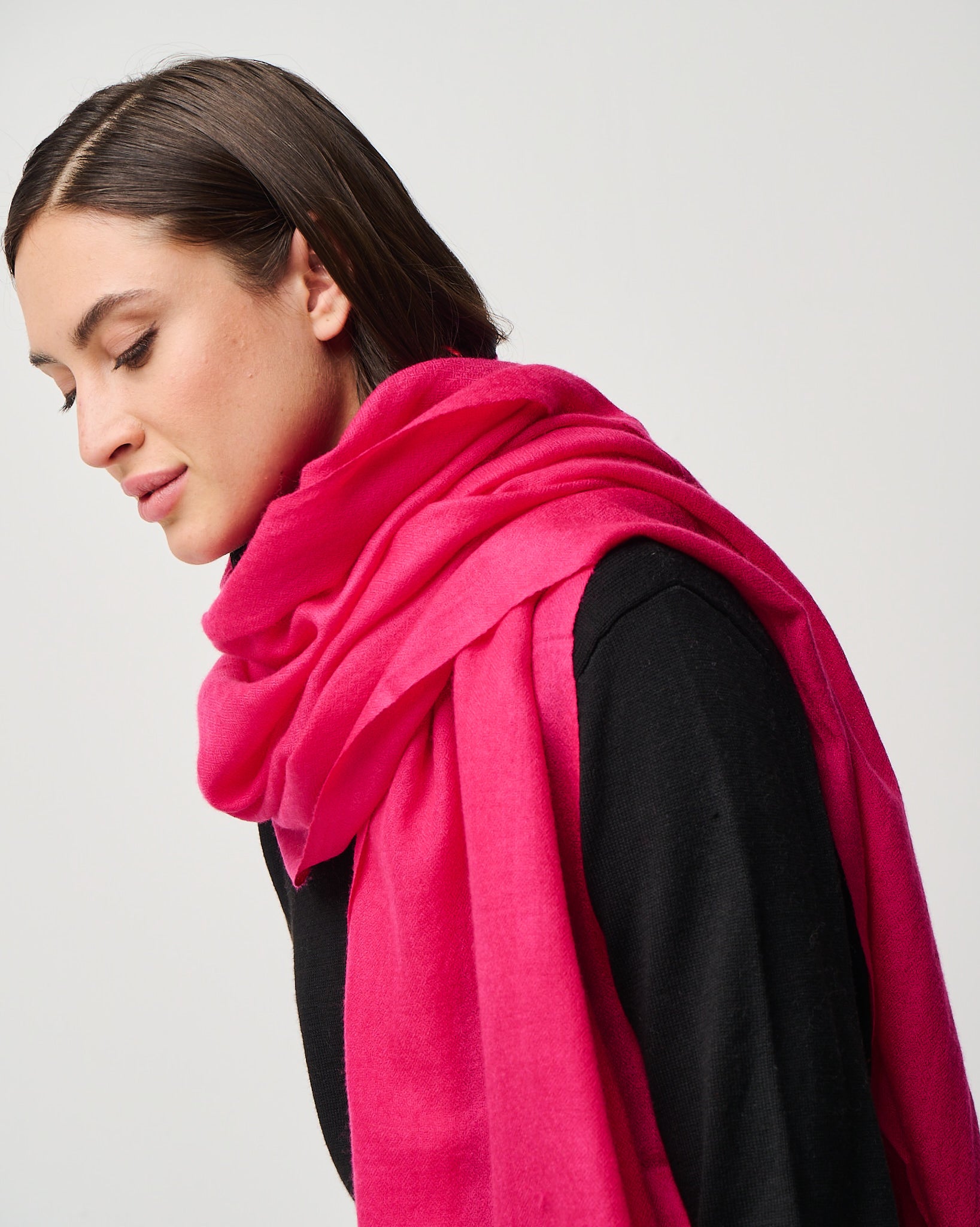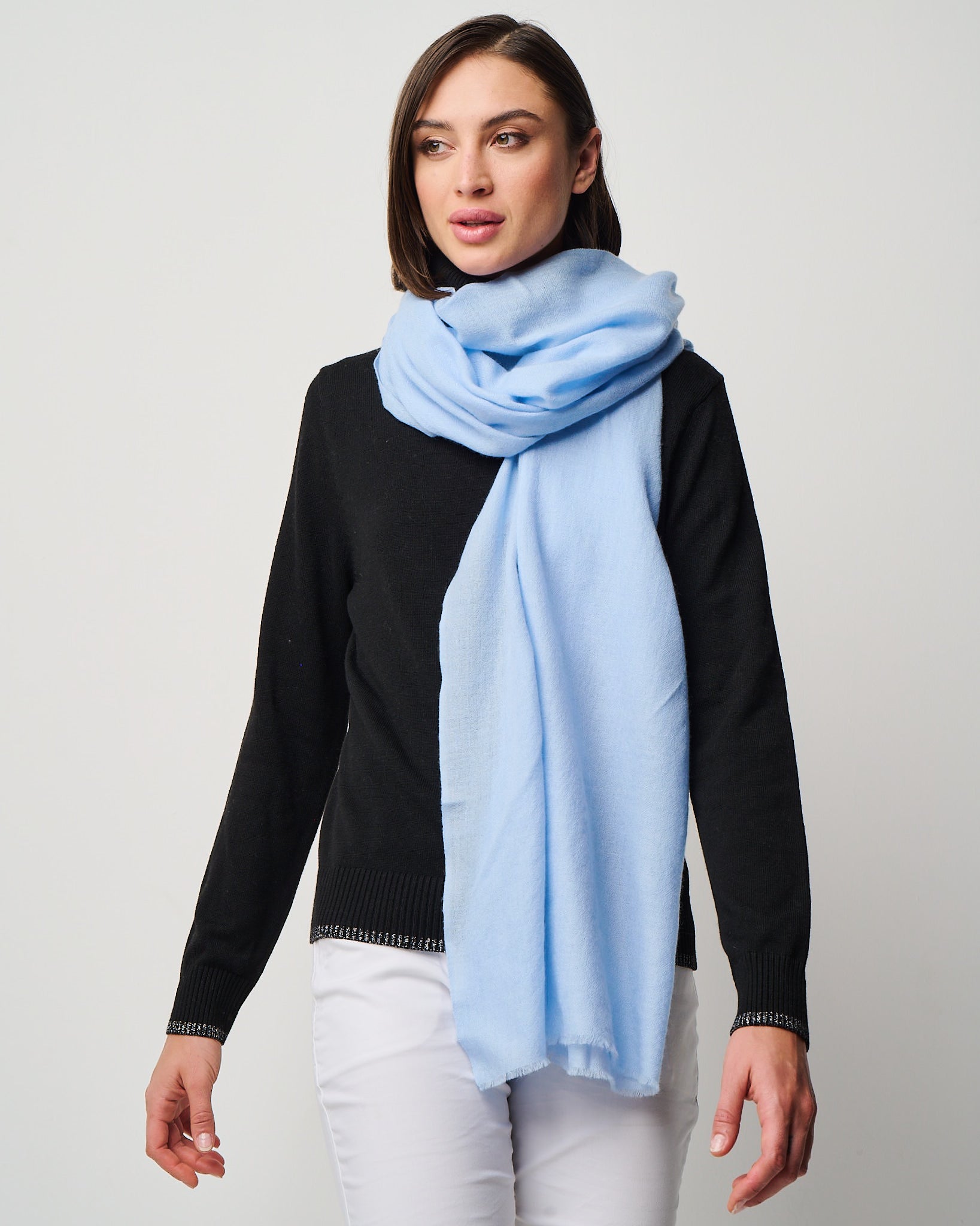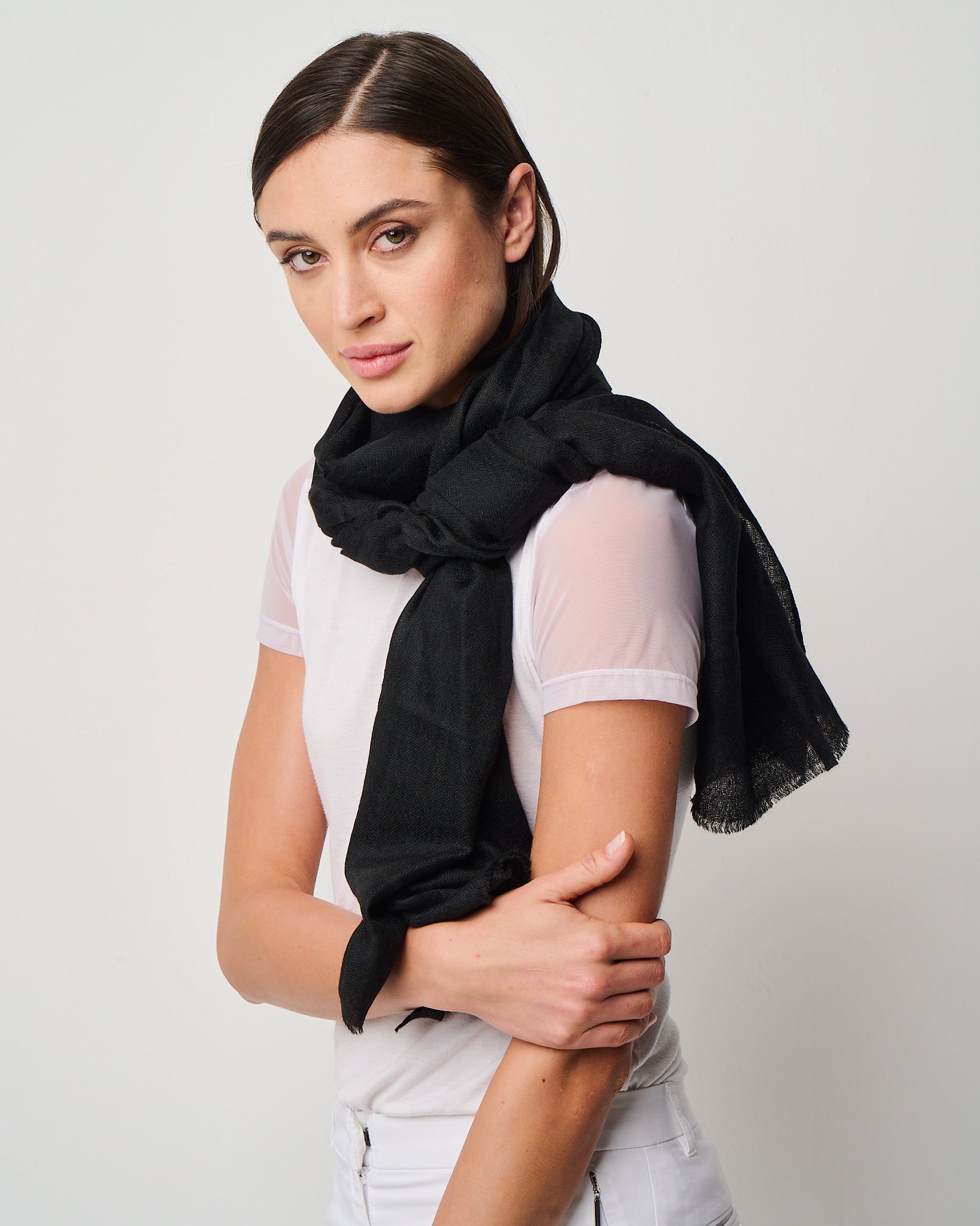 Crafted from the exquisite cashmere fibers of the Kashmir region, this whisper-light wrap embodies elegance in its purest form. It's featherweight texture drapes effortlessly as a scarf, shawl, or any other travel essential, offering cozy warmth without weight. Valentina is a timeless luxury designed for versatility, presence, and quiet indulgence. Easy on the eyes and dreamy to the hand-feel, Valentina is impossibly airy, deliciously soft, and indulgent to the touch. Crafted in Kashmir region from the finest cashmere fibers.